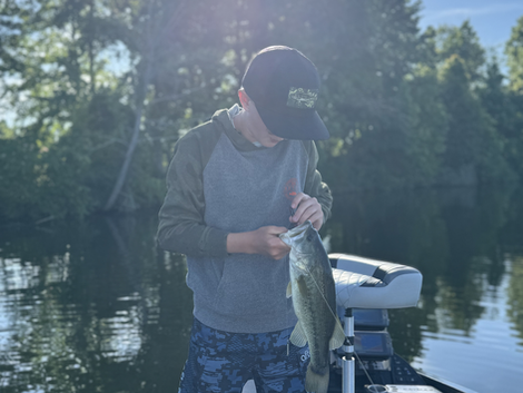 Jameson is getting a good look at just how hungry his Largemouth was!